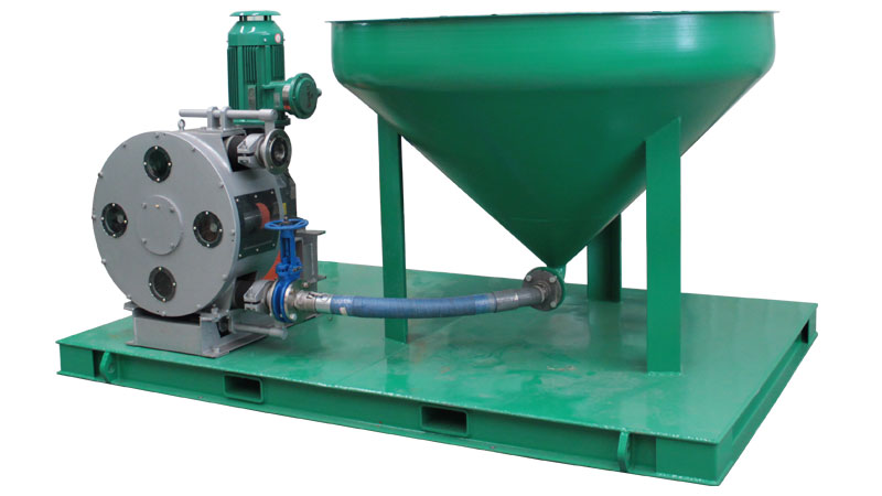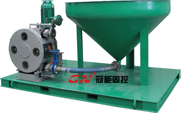 鉆屑輸送裝置由錐形鉆屑接收漏斗和鉆屑輸送泵以及控制裝置構(gòu)成,能夠接收固控設(shè)備用螺旋輸送機(jī)輸送過(guò)來(lái)的鉆屑和鉆井廢棄物。鉆屑輸送泵由電機(jī)驅(qū)動(dòng),通過(guò)真空作用吸取鉆屑,輸送給鉆屑干燥篩或者鉆屑甩干機(jī)處理。鉆屑輸送泵具備較強(qiáng)的自吸能力,專門用于輸送高粘度高固含量耐磨耐酸耐腐介質(zhì),且無(wú)密封結(jié)構(gòu)輸出壓力高。