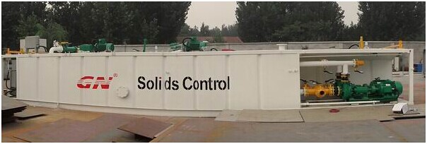 一個(gè)40英尺集裝箱大小的泥罐設(shè)計(jì)有足夠的空間進(jìn)行泥漿的回收及儲(chǔ)存,2臺(tái)50HP的 GNSB6x5-12型離心泵,其中一臺(tái)是用于輸送泥漿到去除泥器,而另一臺(tái)用于混漿