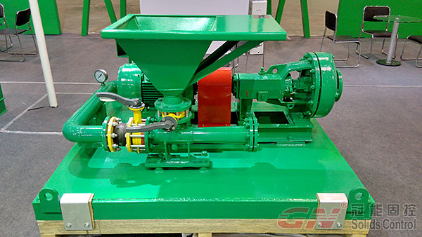 本次展會主要展出了120m³/h處理量的泥漿回收系統(tǒng)及配套的射流混漿系統(tǒng),主要配置了一臺GNZY753E-Y1S型篩泥一體機,雙層篩網(wǎng)設計,面積達到2.225m³,可分離固相粒度40微米,旋流器采用高質量聚氨酯材質,耐磨,使用壽命長,振動電機采用國際意大利OLI品牌或者美國馬丁品牌,篩箱底框采用不銹鋼材質,振動強度達到7.1G(可調),并配有GNSB6×5A(37KW)離心泵為除泥供漿泵,采用機械密封,使用壽命長并便于維修。整套系統(tǒng)撬裝設計,移動便捷,使用方便。