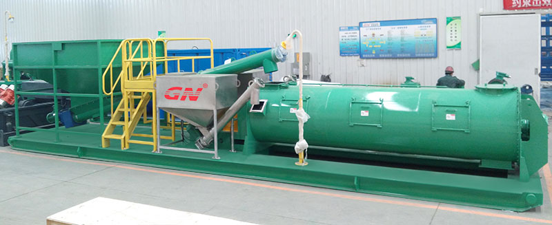 1、鉆屑儲料漏斗接收待處理的鉆屑和泥漿廢棄物,通過螺旋送料機按照預(yù)先設(shè)定的輸送量輸送到固化攪拌機中去。