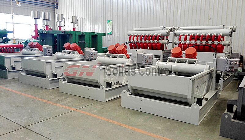 2. 一級分離設(shè)備:雙層振動篩。擁有上下兩層篩網(wǎng)的鉆井液振動篩:一層粗篩網(wǎng)可以將粗顆粒進行分離,第二層細篩網(wǎng)可以將泥漿中更為細小的顆粒進行篩除。剩下的泥漿進入臥螺式沉降離心機進行進一步凈化分離。